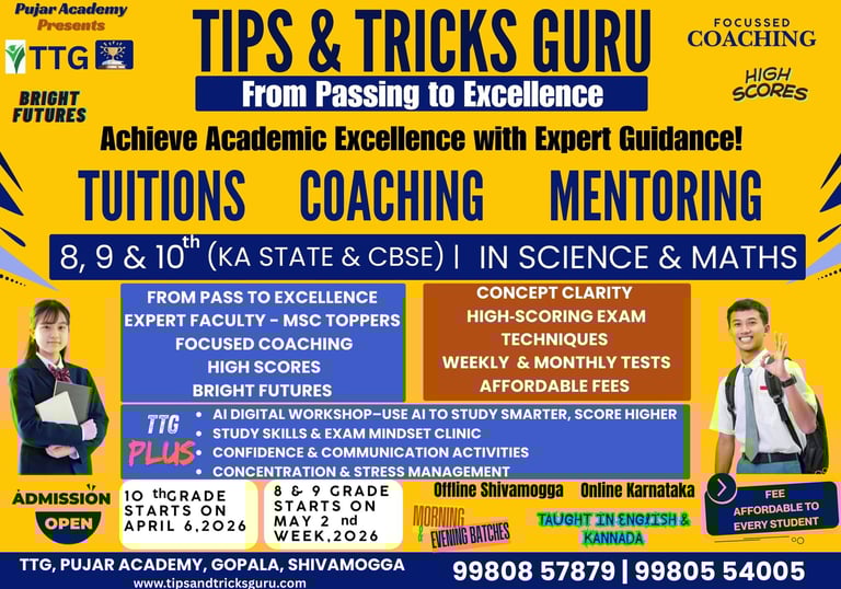 Grades: 8, 9, 10 | Boards: Karnataka State (SSLC) & CBSE